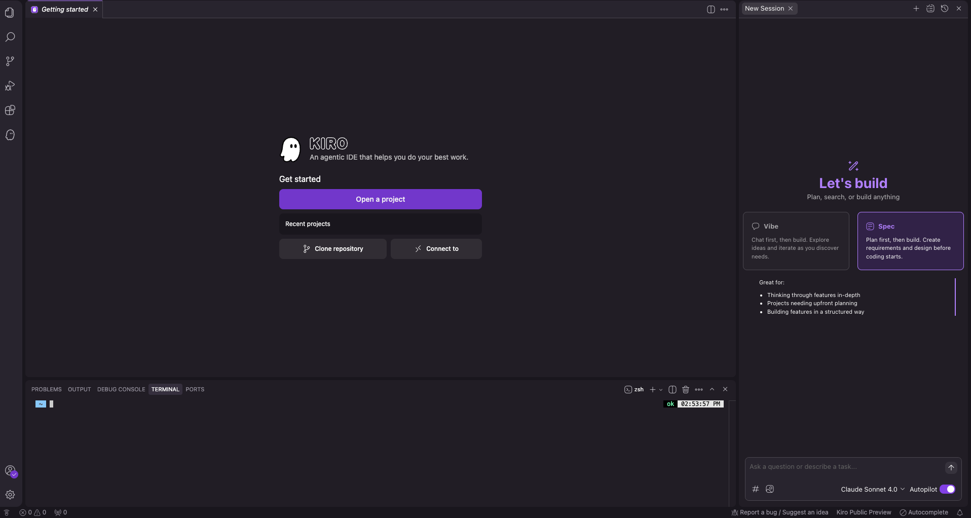 Kiro is a full-fledged IDE built on open-source VS Code, but with a built-in AI agent. It supports Mac, Windows, and Linux, and focuses on an "agentic" approach: AI actively participates in the development cycle.